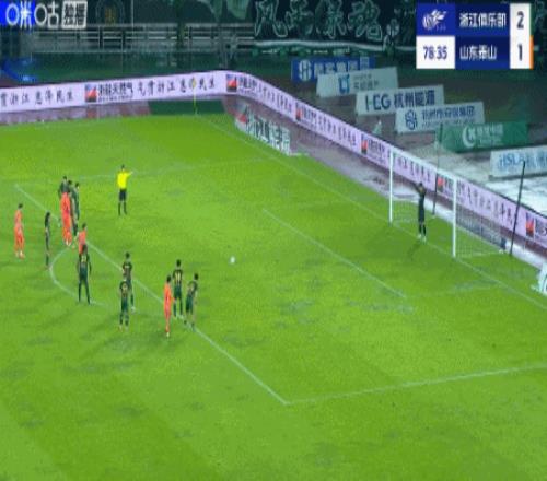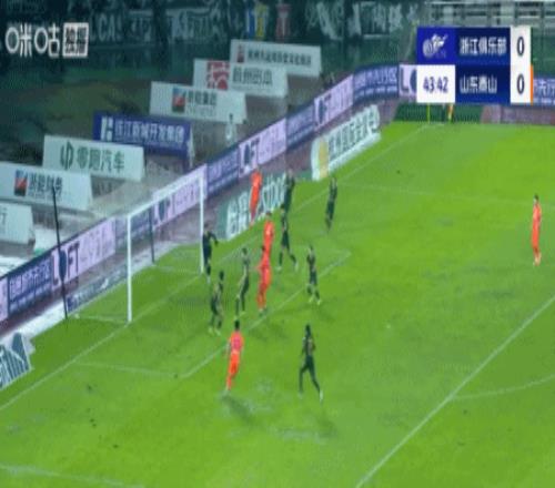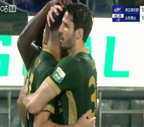 第45分钟,黄政宇禁区外轰出一记世界波,打在程进身上折射入网,泰山客场1-0!