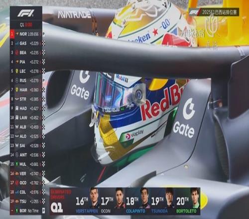 第五至第十名分别是:哈贾尔、拉塞尔、劳森、比尔曼、加斯利和霍肯伯格。维斯塔潘在Q1阶段因赛车缺失抓地力被早早淘汰,仅获得第16名无缘Q2!
