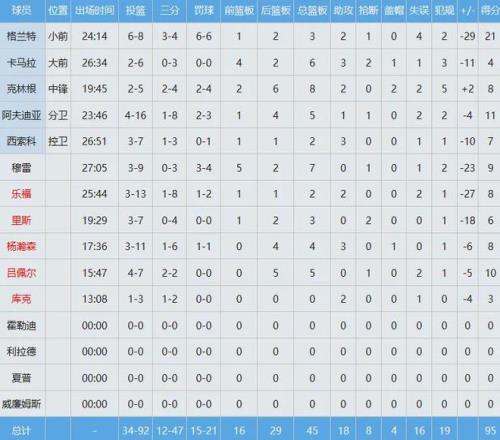 雷霆数据如下: