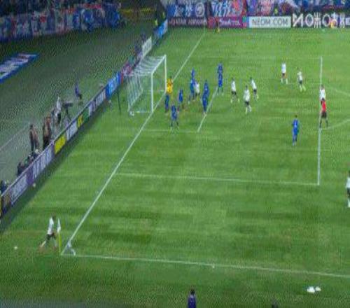 精彩进球:第39分钟,神户胜利船开出战术角球,山川哲史头球破门