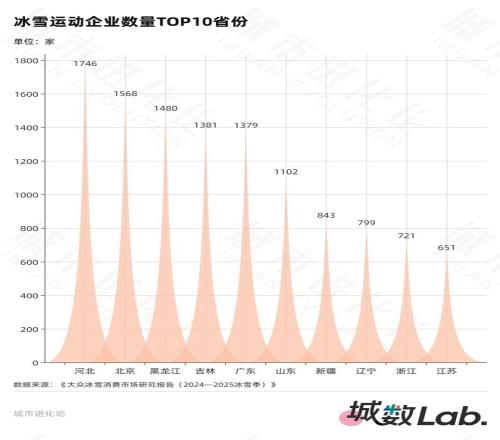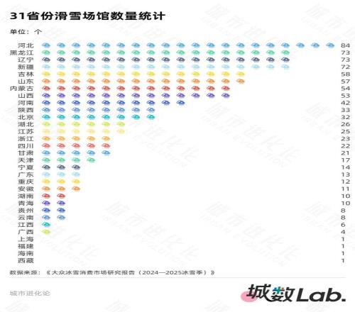 不过,在滑雪场馆数量、冰雪运动相关企业规模等方面,黑龙江与“全国第一”尚有差距。根据上述报告对各省份滑雪场馆数量的统计,河北以84个位列全国第一,黑龙江(73个)与辽宁并列第二,新疆(72个)以微弱差距紧随其后;同期,黑龙江冰雪运动产业相关企业数量共1480家,分别比前两位的河北和北京少266家、88家,排名从上个冰雪季全国第二降至全国第三。