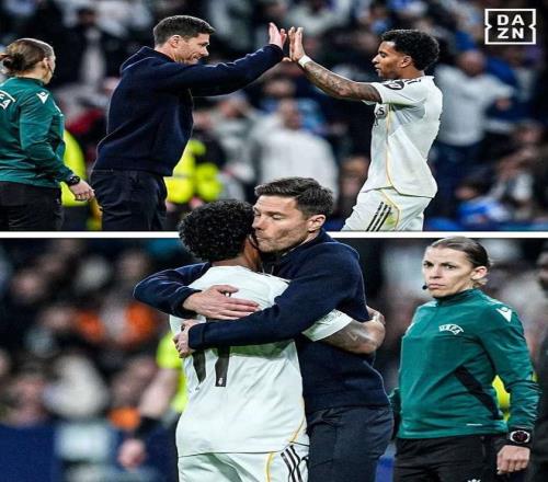如果这个比分保持到终场,阿隆索大概率还是会卷铺盖走人。生死时刻,罗德里戈再度挺身而出。第77分钟,维尼修斯左路突破传中,罗德里戈中路抢点推射破门打进制胜进球。进球之后,皇马球员激情相拥庆祝,维尼修斯甚至还跑到场边拥抱了哈维阿隆索。看起来,罗德里戈的连场进球让小熊也感受到了压力。