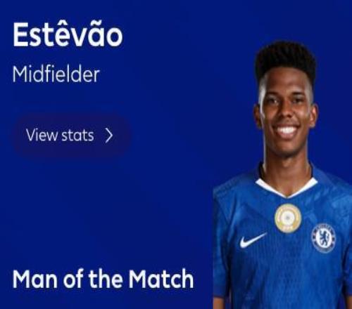 制造点球,埃斯特旺当选切尔西vs伯恩茅斯全场最佳球员