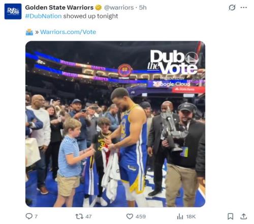 这场比赛斯蒂芬在父亲戴尔的母队获得了巨大的支持声,就如同库里在布鲁克林被高呼MVP一样,比赛结束后很多的球迷都来围绕着萌神,37岁的库里为多位小球迷都进行了签名。