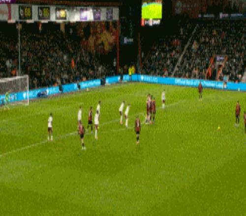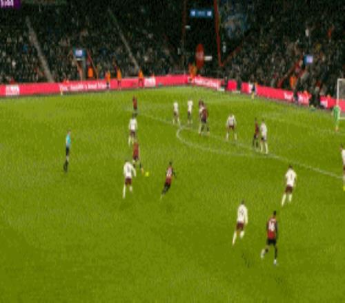 第53分钟,伯恩茅斯快开任意球,布鲁克斯小角度射门打偏。