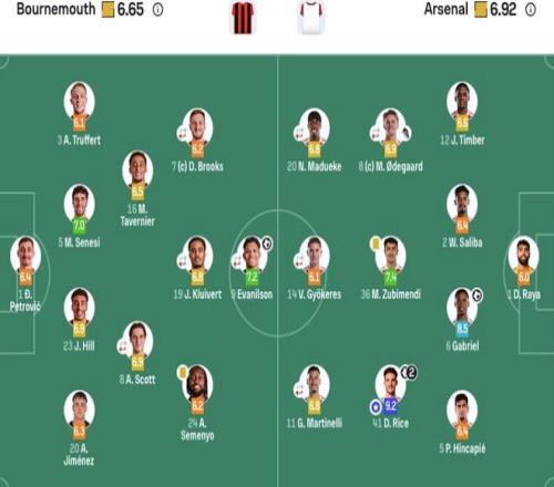 伯恩茅斯首发:1-佩特洛维奇、3-特吕费尔、5-塞内西、20-A·希门尼斯、23-詹姆斯·希尔、8-斯科特(74' 22-克鲁皮)、19-克鲁伊维特(74' 4-库克)、7-布鲁克斯(67' 21-阿明·阿德利)、9-埃瓦尼尔森(74' 26-于纳尔)、16-塔韦尼耶、24-塞梅尼奥