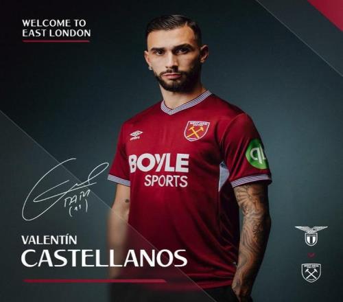 西汉姆联足球俱乐部欣喜宣布,签下阿根廷国脚前锋卡斯特利亚诺斯。这位27岁的球员从意甲拉齐奥俱乐部转会而来,双方签订了一份为期四年半的合约,且俱乐部拥有延长一年合同的选项。