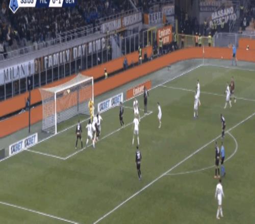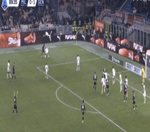 38:15,米兰左路攻势,莱奥背身不停球斜塞给普利西奇,但被热那亚中卫厄斯蒂高预判卡位,随后美国队长反抢犯规。