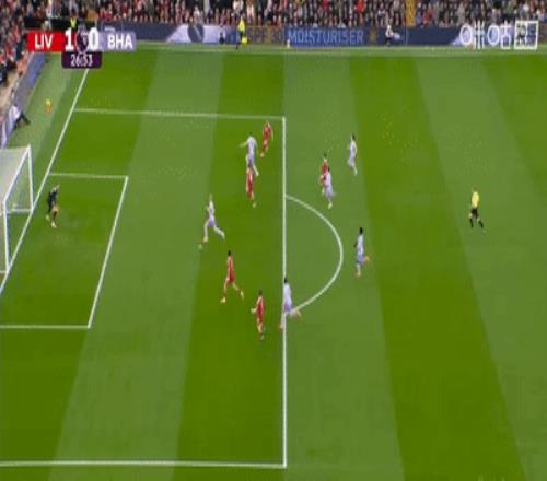 仅仅一分钟之后,布莱顿快速反击,魏费尔右侧低平球传到后点,科纳特试图解围没能够到皮球,戈麦斯包抄铲射将球打在门柱外侧,利物浦逃过一劫。